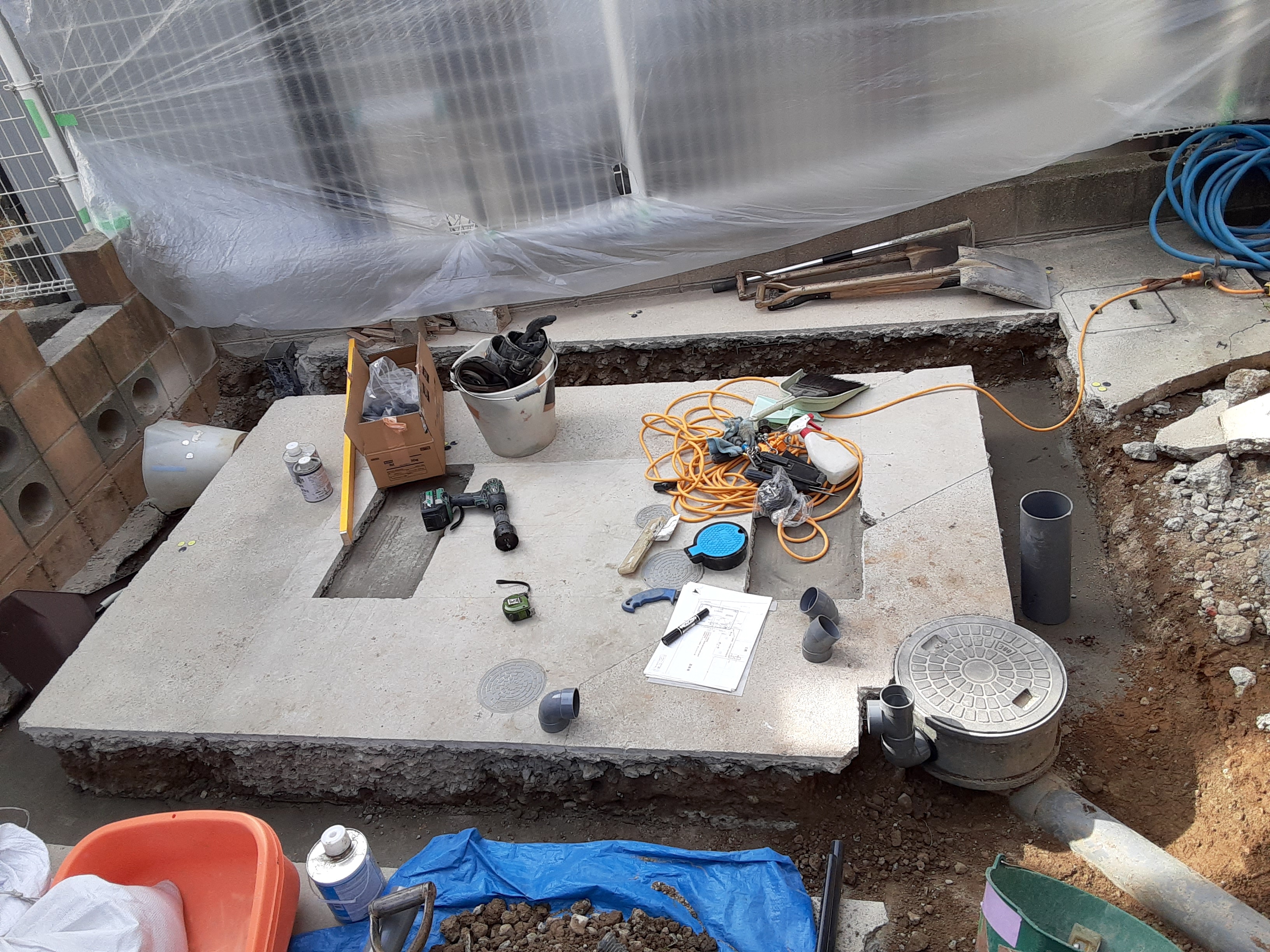 基礎工事の途中ですがバトンタッチして設備屋さんが工事に入ります🛠️