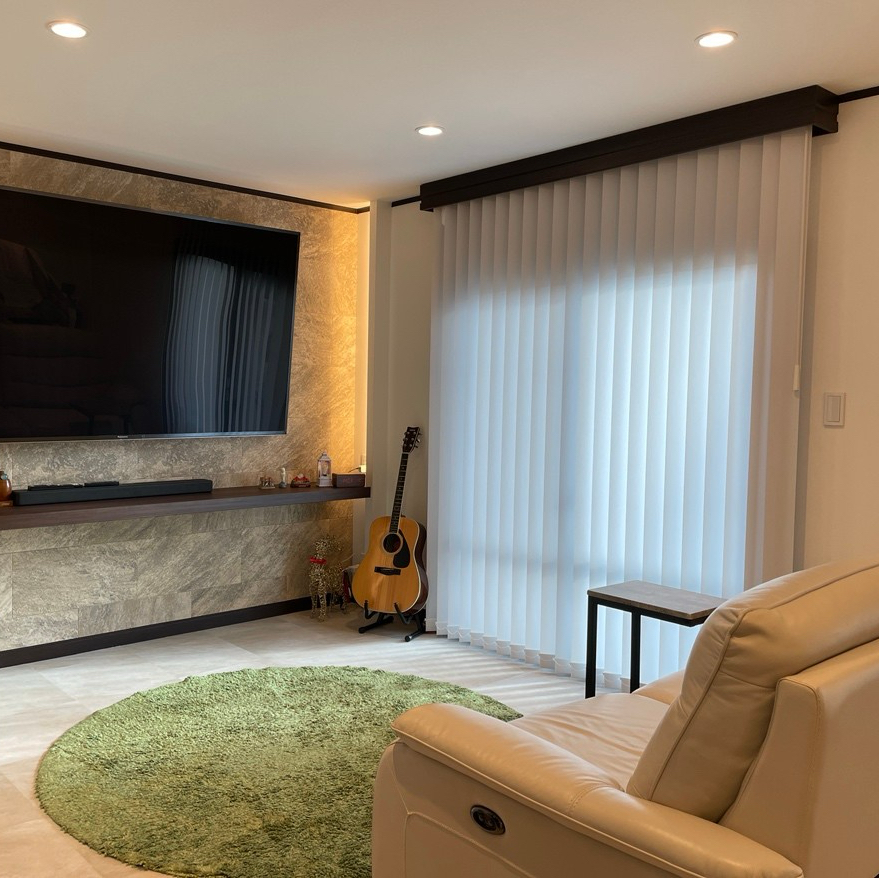 窓辺には天井を高く見せる効果のあるバーチカルブラインドを採用✨