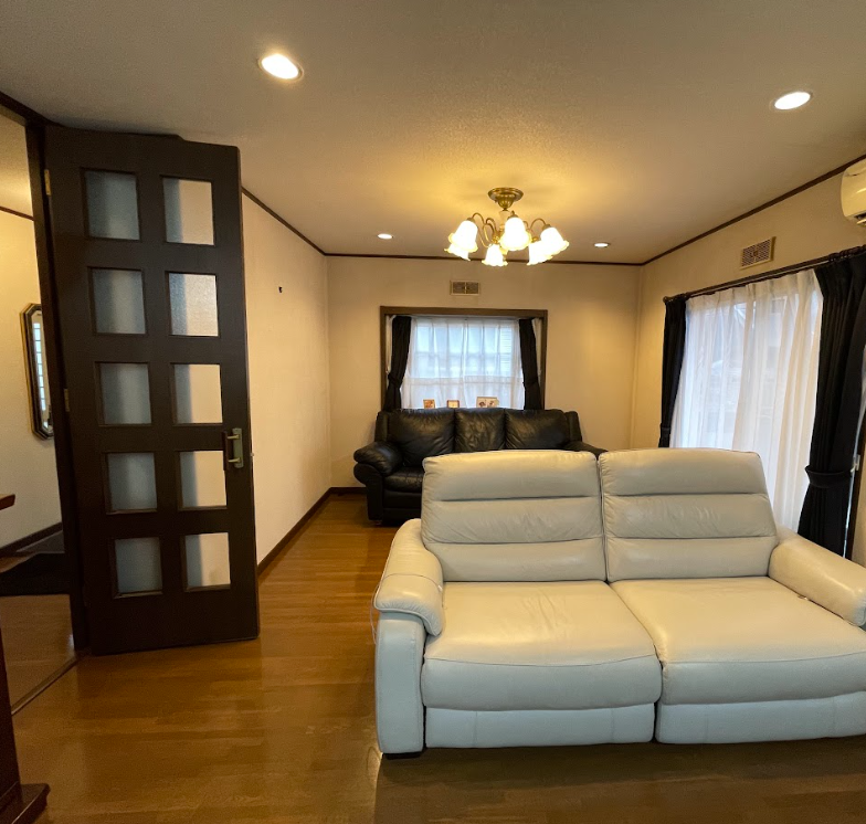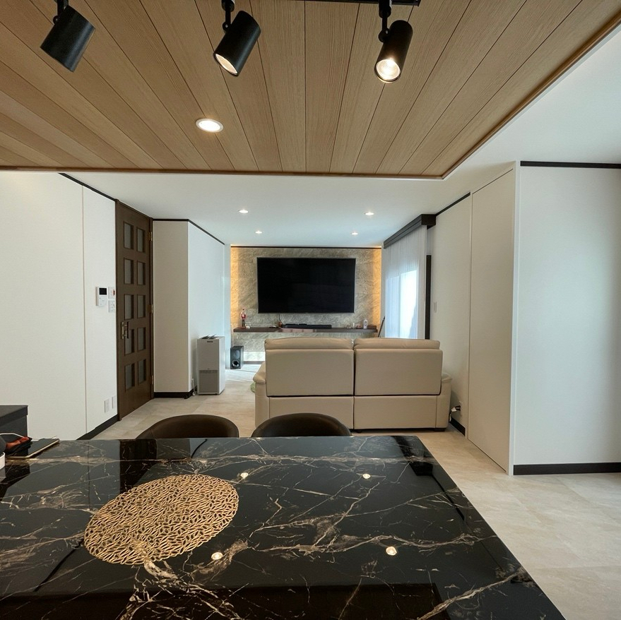 クリームトーンの床材を使用し、優雅でホテルライクなリビングへと生まれ変わりました🔨
