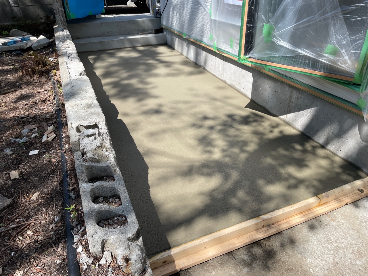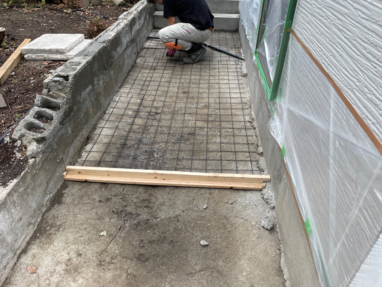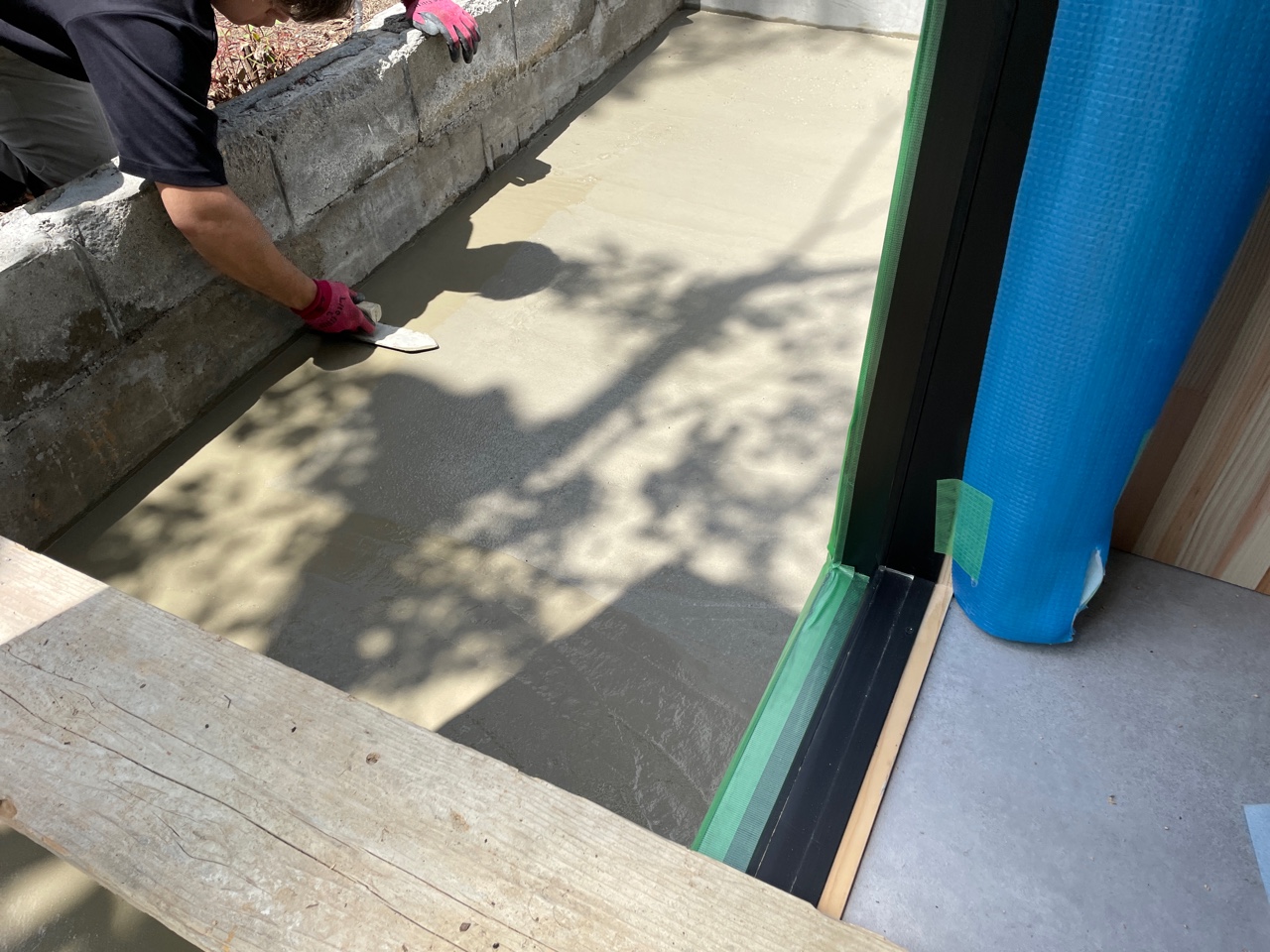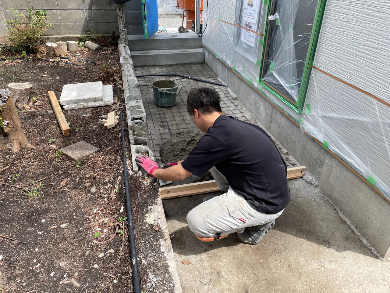 門扉から工房に入るまで土間を施工していきます。